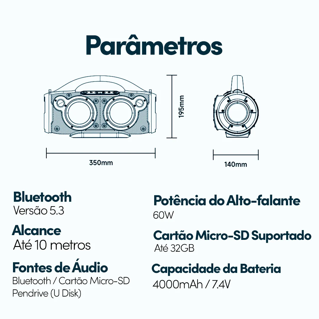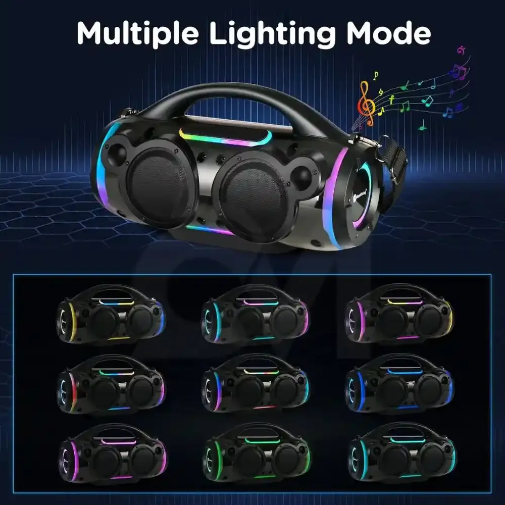 The Awei KA12 60W Portable Bluetooth Speaker is precisely designed to provide a durable and fully immersive sound experience, making it one of the most powerful alternatives in its category. This Awei KA12 Bluetooth Speaker has a high-performance 60-watt output and uses powerful twin speakers, an innovative BP1048B2 amplifier chip, and a D-Class HAA3605 amplifier to provide rich, deep bass, lively mids, and clear highs. With 360° surround sound and four diverse play modes (Bluetooth, AUX, Micro SD card, and USB), the Awei KA12 Portable Speaker allows for music playback in a variety of formats. Its latest Bluetooth V5.3 (JL AC6956C8) technology ensures a fast, stable connection with a maximum transmission distance of 10 meters, supporting protocols like HSP, HFP, A2DP, and AVRCP for uninterrupted wireless streaming. Designed for premium performance, this Awei Bluetooth Speaker has a signal-to-noise ratio of ≥80dB and a wide frequency response of 20Hz to 20KHz, delivering high-fidelity sound for all genres. Powered by a 4000mAh / 7.4V battery, it ensures 4 to 5 hours of music playback at 70 percent volume and recharges fully in just 5 hours via Micro USB (DC5V input). The Awei KA12 Speaker also features an anti-slip, anti-impact base, making it suitable for both indoor and outdoor settings. In addition to having an AUX input and supporting Micro SD cards up to 32GB, it has a sturdy but portable body that measures 350 x 140 x 200 mm. The Awei KA12 60W Portable Bluetooth Speaker is ideal for travel, parties, or casual listening. It combines strong sound, sturdy construction, and flexible connection in one amazing compact.