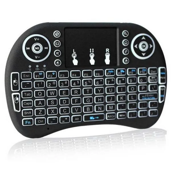 The I8-B Wireless Backlit Mini Keyboard with Touchpad Mouse is a compact and multifunctional input device designed for smart TVs, Android TV boxes, PCs, laptops, and gaming systems. Combining a full mini keyboard with a built-in touchpad mouse, it allows smooth navigation, typing, and control from a distance.